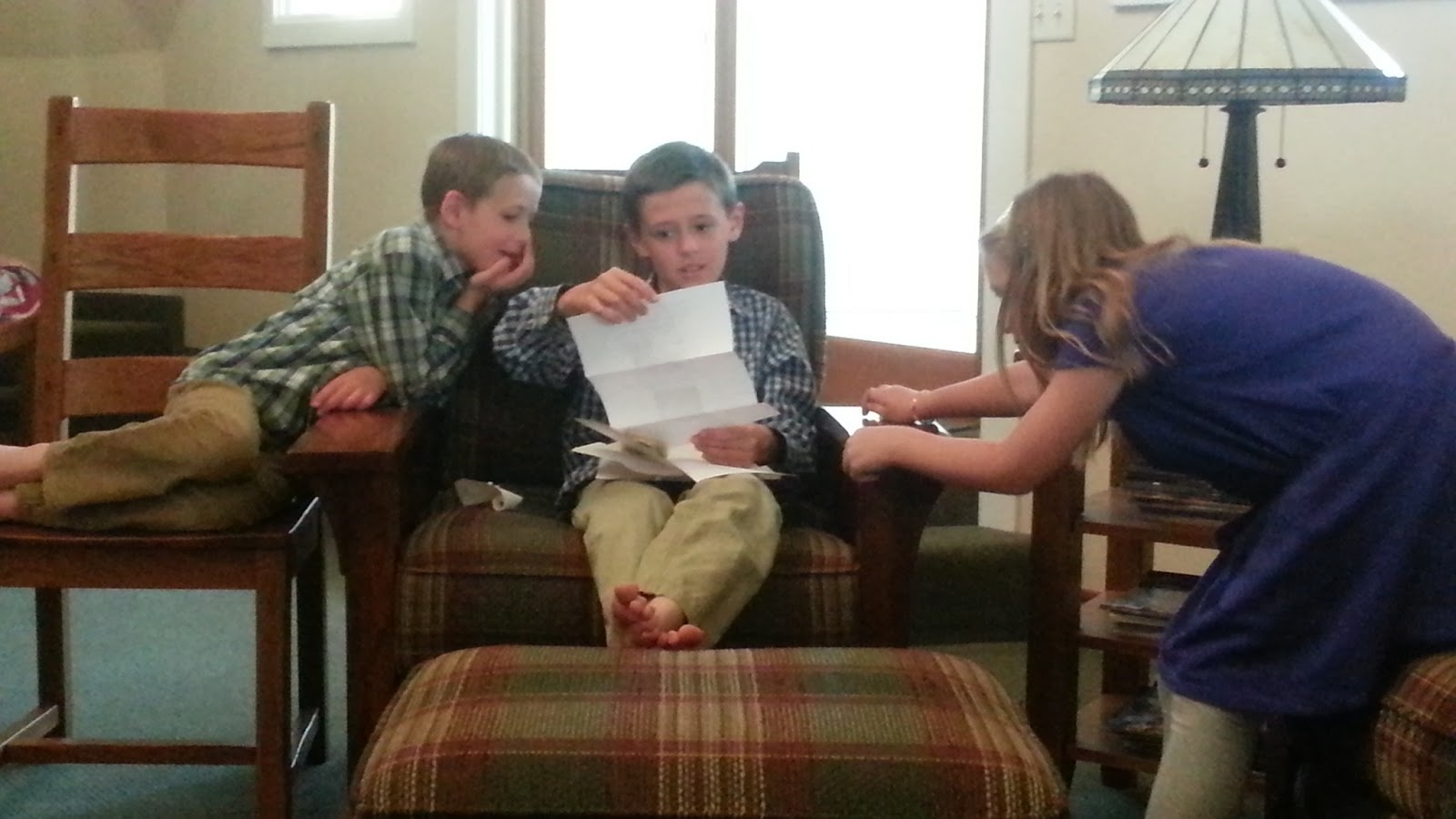 Sunday morning Josh was anxious to open his gifts. I made them all get ready for church first.